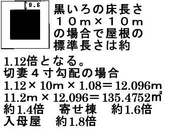 ※瓦屋根の棟の面積計算−各屋根の棟は高さによってバラツキが大きい。